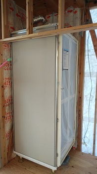 シャワーユニットが施工されました。竣工まで扉を開けないようにします。
