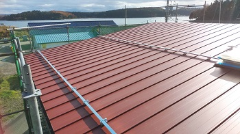 屋根板金工事の完了確認を行いました。秋風が吹く中、心地よい風景をみることができました。
