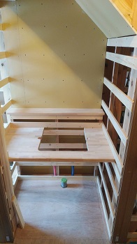 階段下の洗面化粧台のカウンターが取り付けられました。上の陶器は、これからの取り付けとなります。