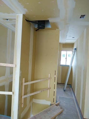 お二階のボード貼りを行っています。お部屋の雰囲気が少しずつ分かるようになってきます。