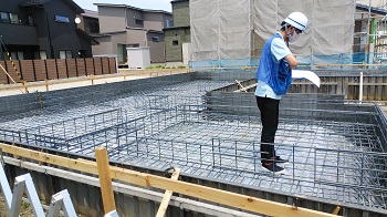 基礎配筋を終え第三機関の検査も終了いたしました。これからコンクリートを打設し基礎完成へと進んでいきます。工務部 竹端