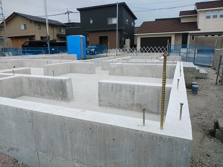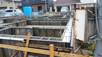 基礎コンクリート打設を終え、現在養生期間となっております。7/9に脱型を予定しています。工務部 竹端