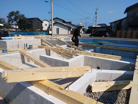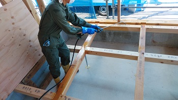 防蟻材の塗布を行いました。これで白蟻からお家を守れます。工務部 竹端