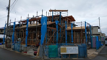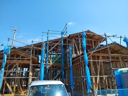 本日、上棟を行い、怪我事故なく無事に終了いたしました。明日からは主に屋根瓦工事と木工事が進んでいきます。工務部 竹端