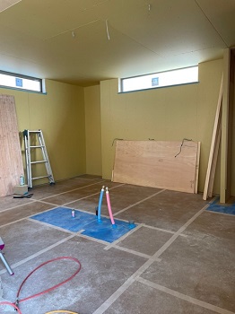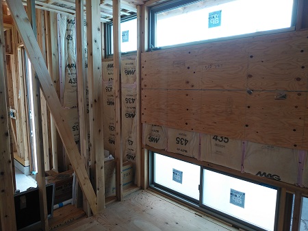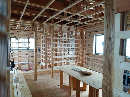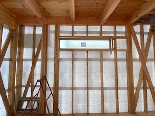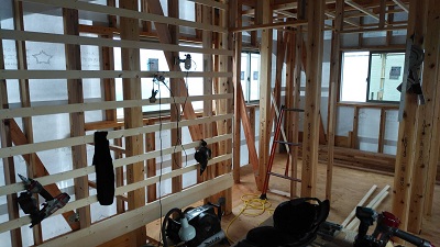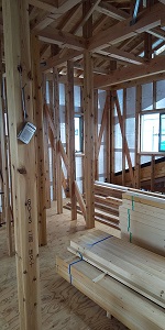 木工事がもうすぐ完了し、内装仕上げ工事へと移行します。工務部 竹端