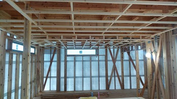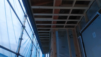 内部では天井下地を施工しております。外部下地ももうすぐ完成です。工務部 竹端