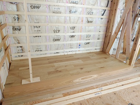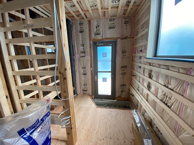 玄関ホールより床が施工されております。お部屋内の床も、もうすぐ施工となります。工務部 竹端