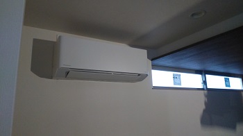 クロス工事が終わり、現在は器具付を行っております。エアコンも取り付けられました。工務部 竹端
