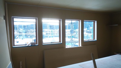 お二階のボード貼りを行っています。お部屋の雰囲気が少しずつ分かるようになってきます。