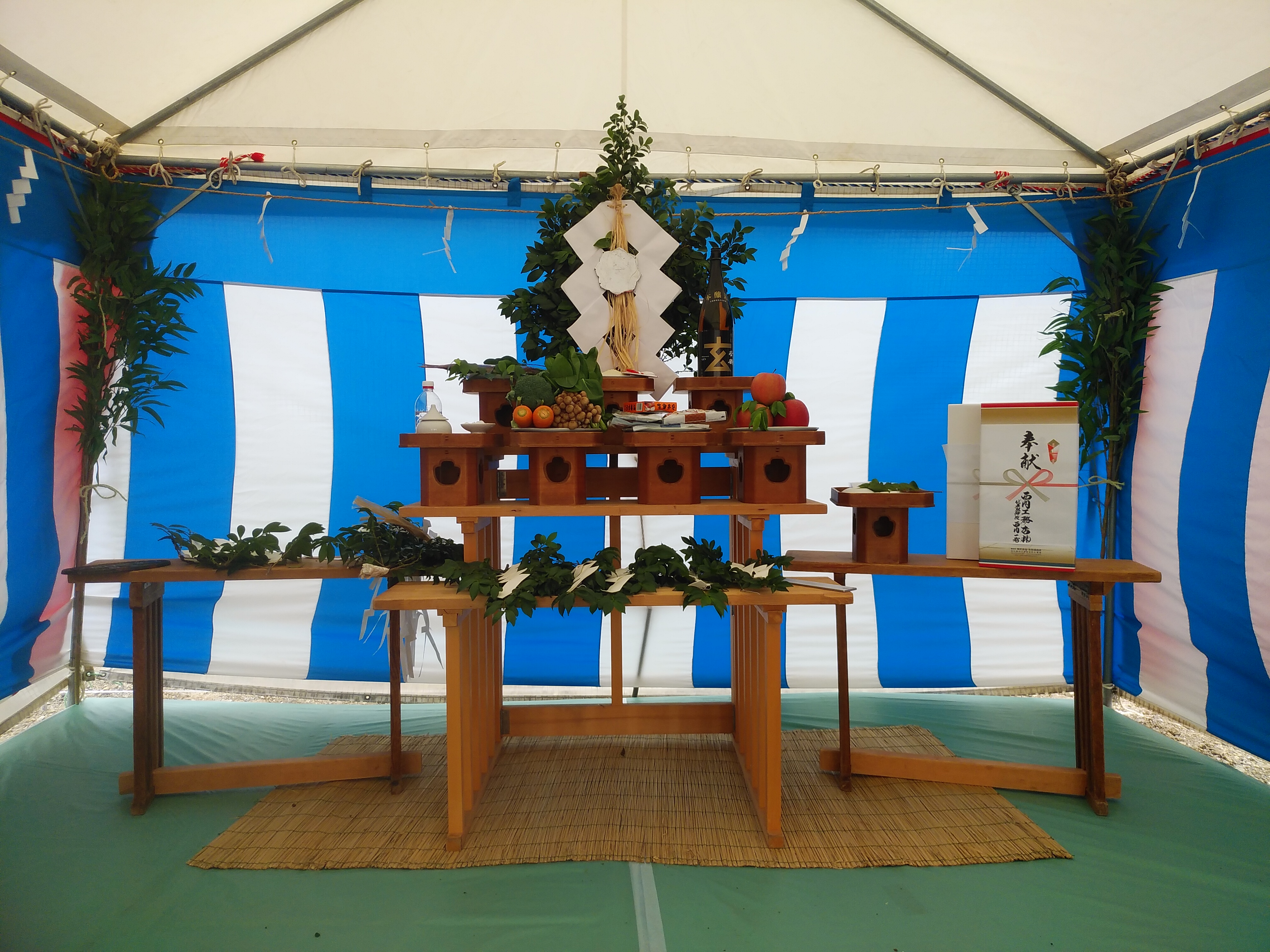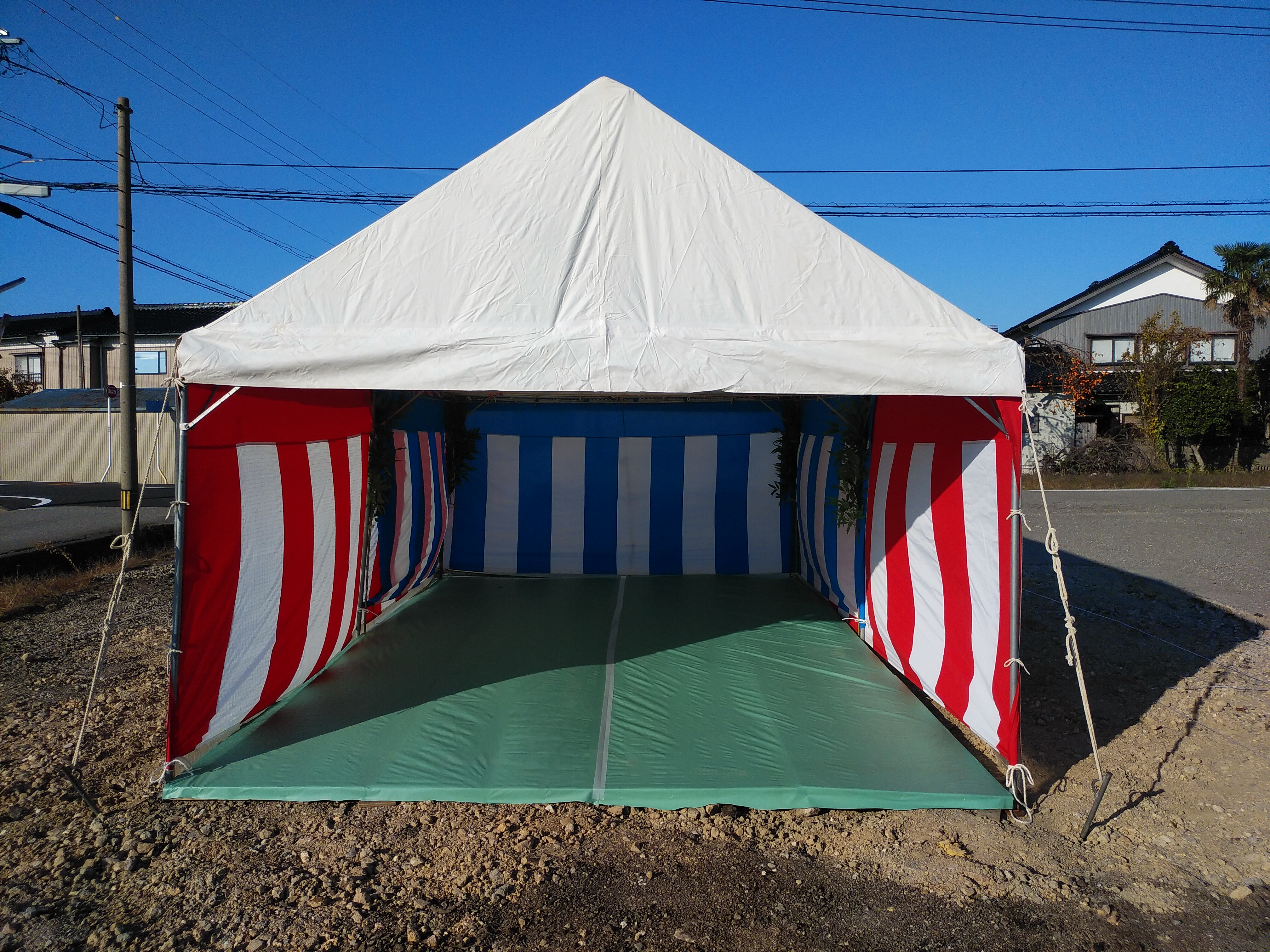 昨日地鎮祭用のテントが設置されました。 本日9:30~の地鎮祭の準備は万全です。
