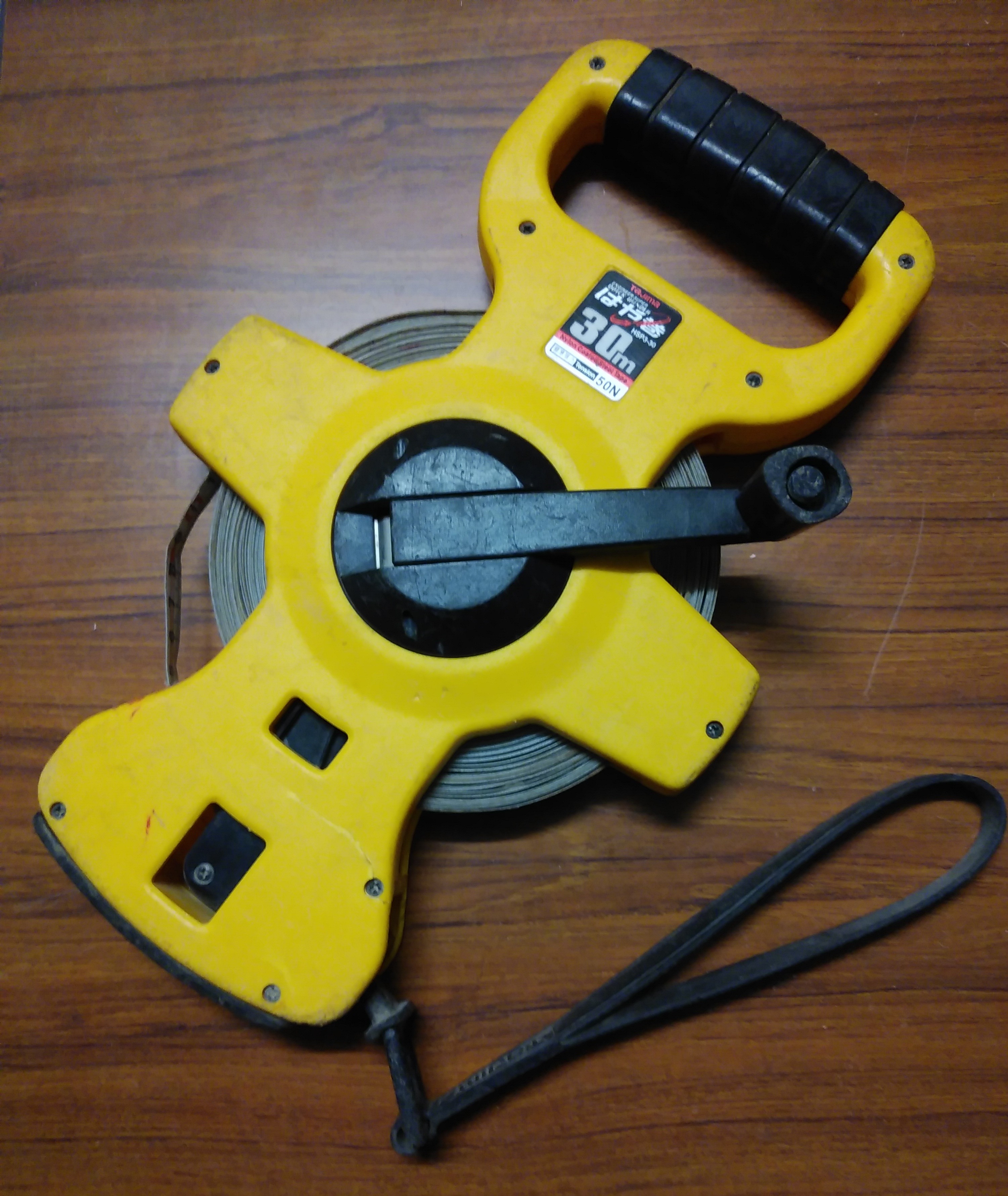 基礎工事にかかる前に、丁張りという作業を行います。建物の位置を正確に決めるための大切な工程です。画像の道具を使い正確に距離を測っていきます。