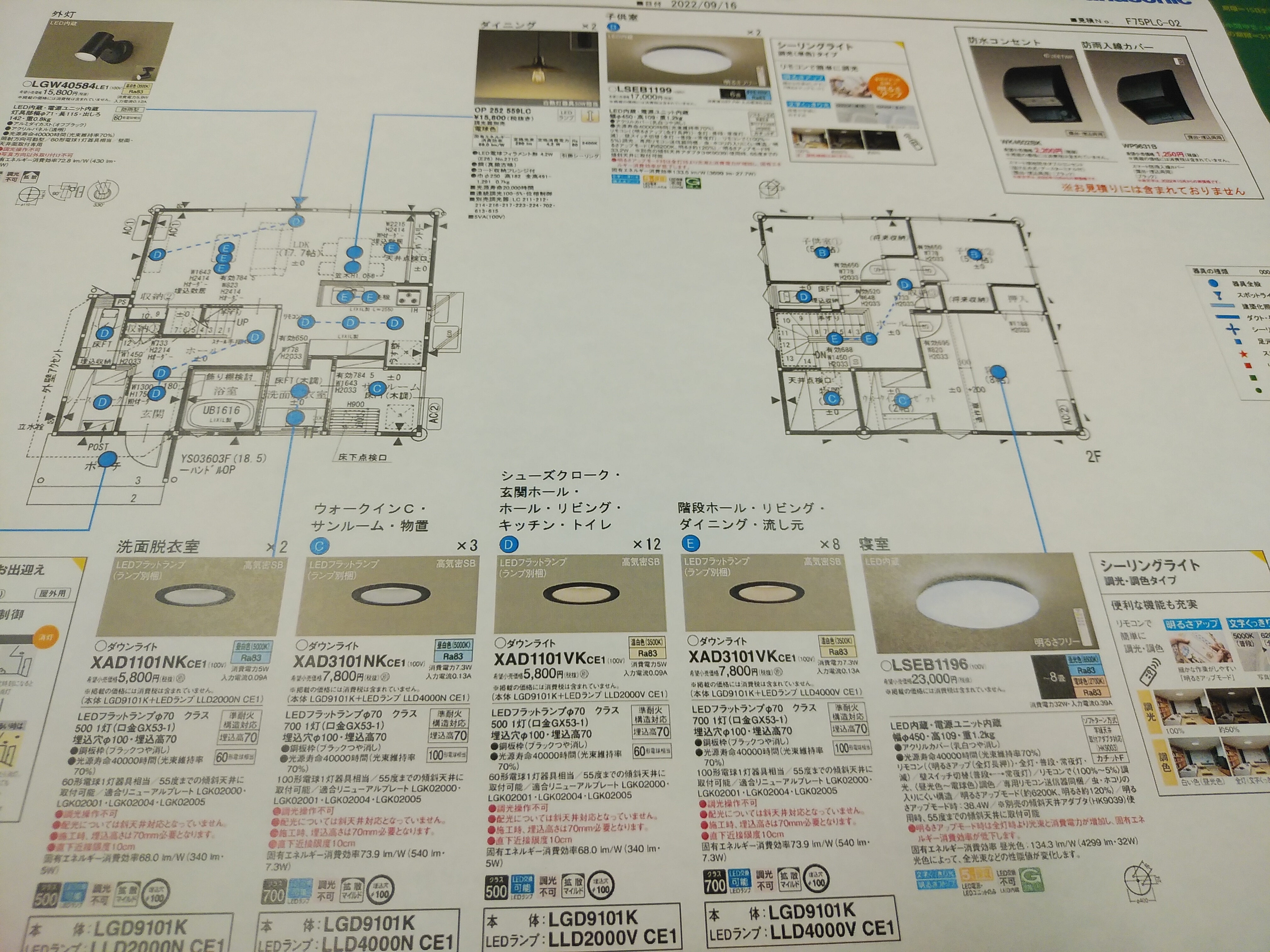 契約以降はたくさんの項目で細部にわたりお打合せをさせていただいております。先日ご紹介させていただいたカーテンだけでなく、照明も大切な項目になります。画像のプレゼンをもとに電気工事屋さんへの指示、商品の発注を行っていきます。