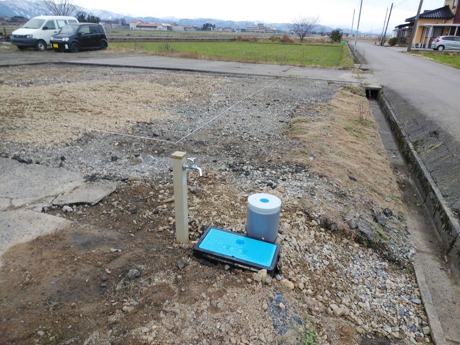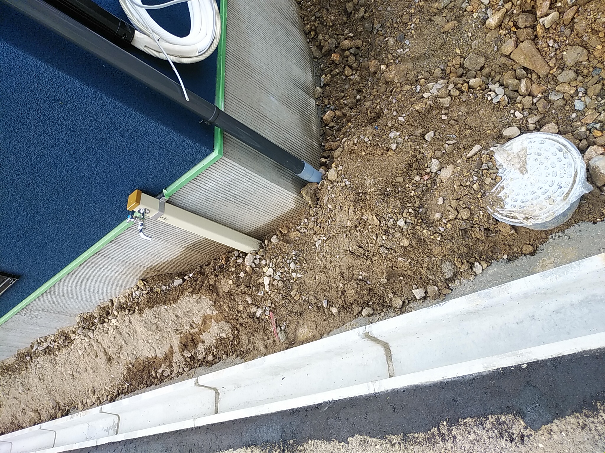 昨日行っていた水道引込工事が無事に完了しておりました。 お天気がよくて良かったです!