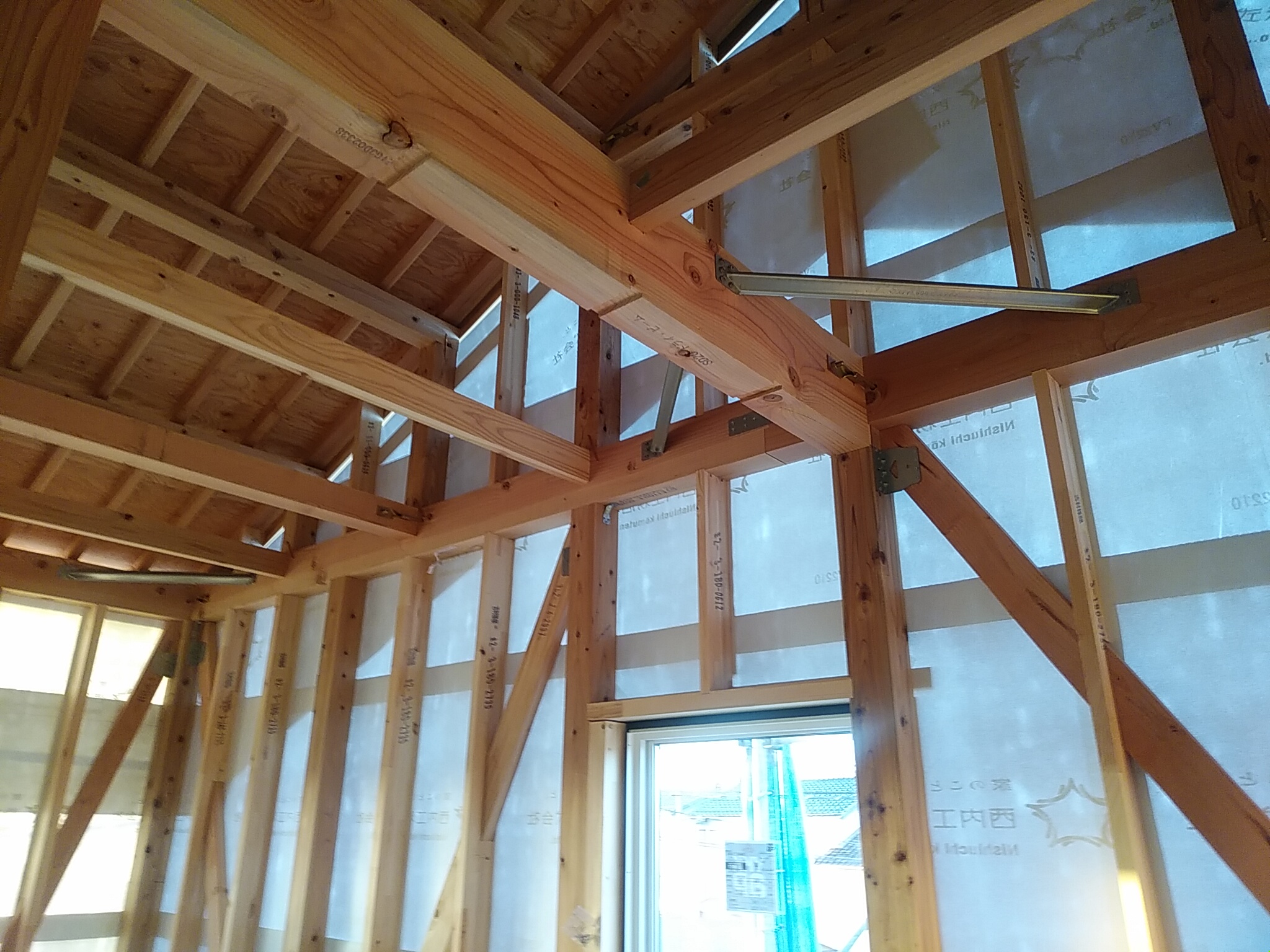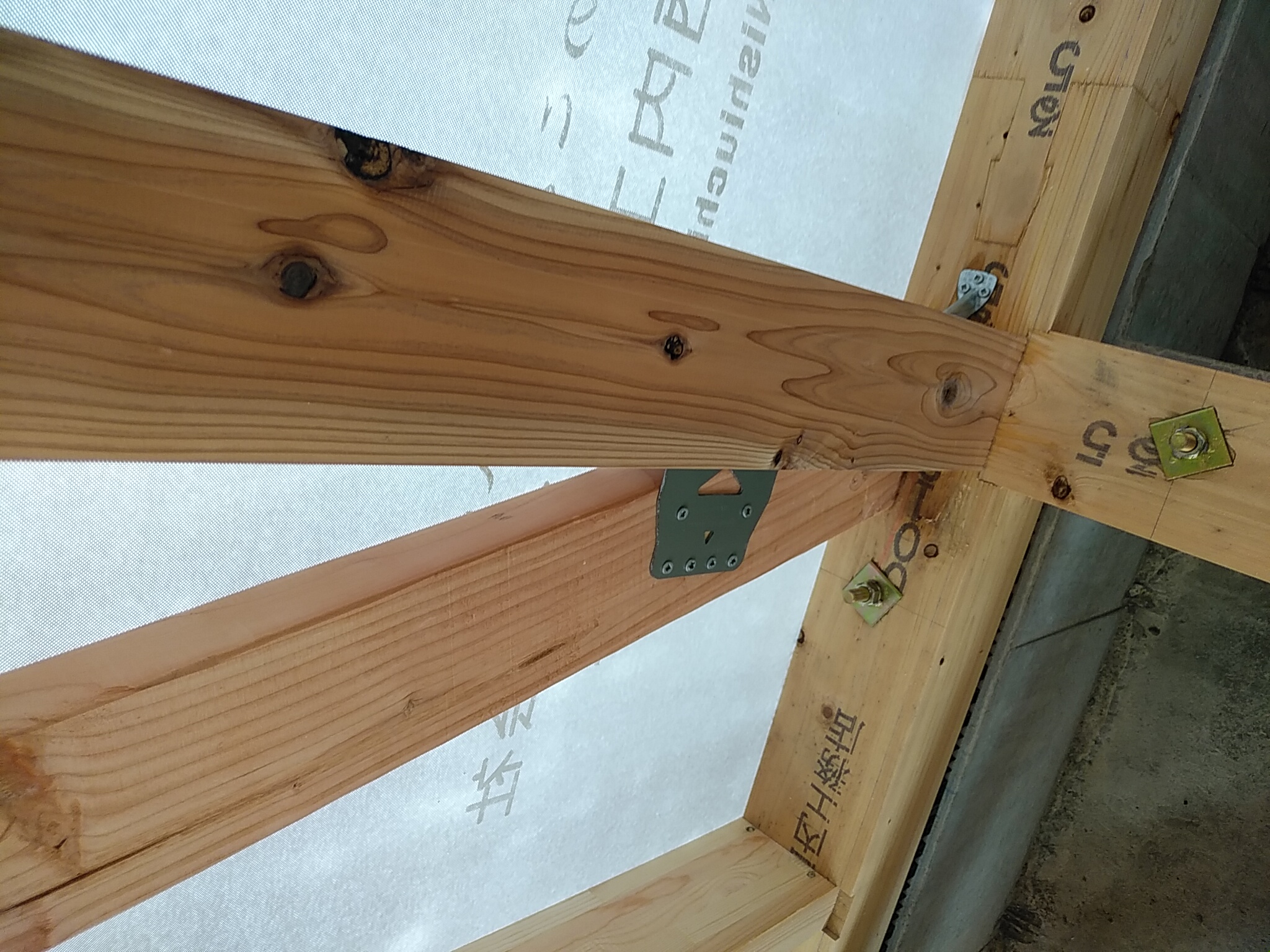 筋交いの端部に金物が取り付けられました。 これで地震が来ても安心です。