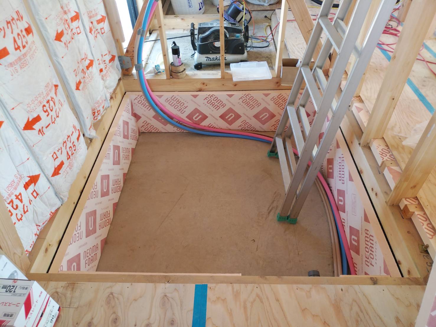 今週土曜日に予定しているユニットバス組立の受け入れ態勢が整っていました。組立直前にきれいに掃き掃除をしてから作業を開始いたします。