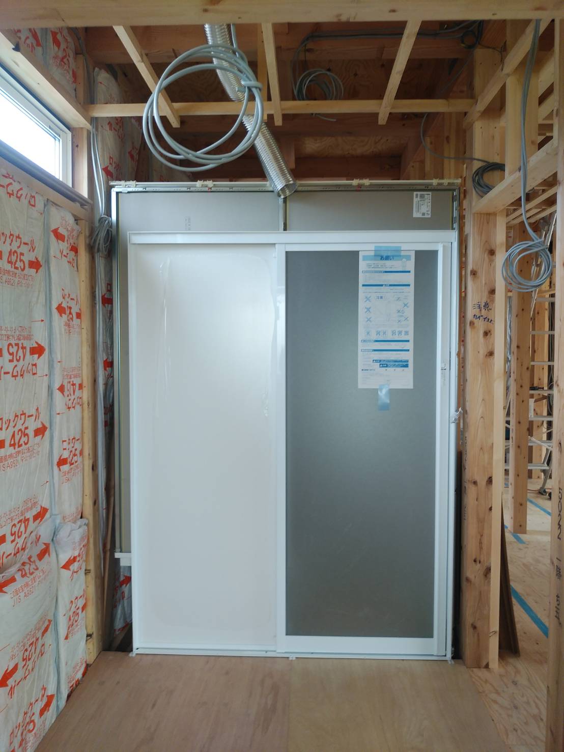 先週末に予定通りユニットバスの組立が完了しました。 今はまだ浮いた存在ですが、これから壁や間仕切りができてくると雰囲気に馴染んできます。