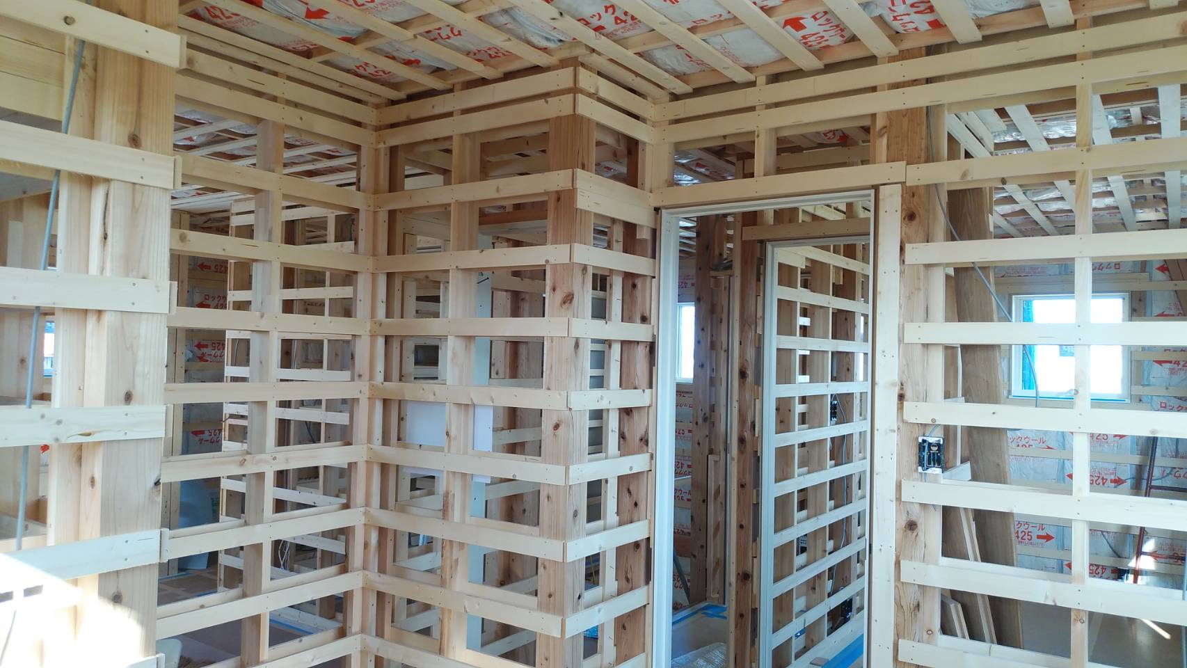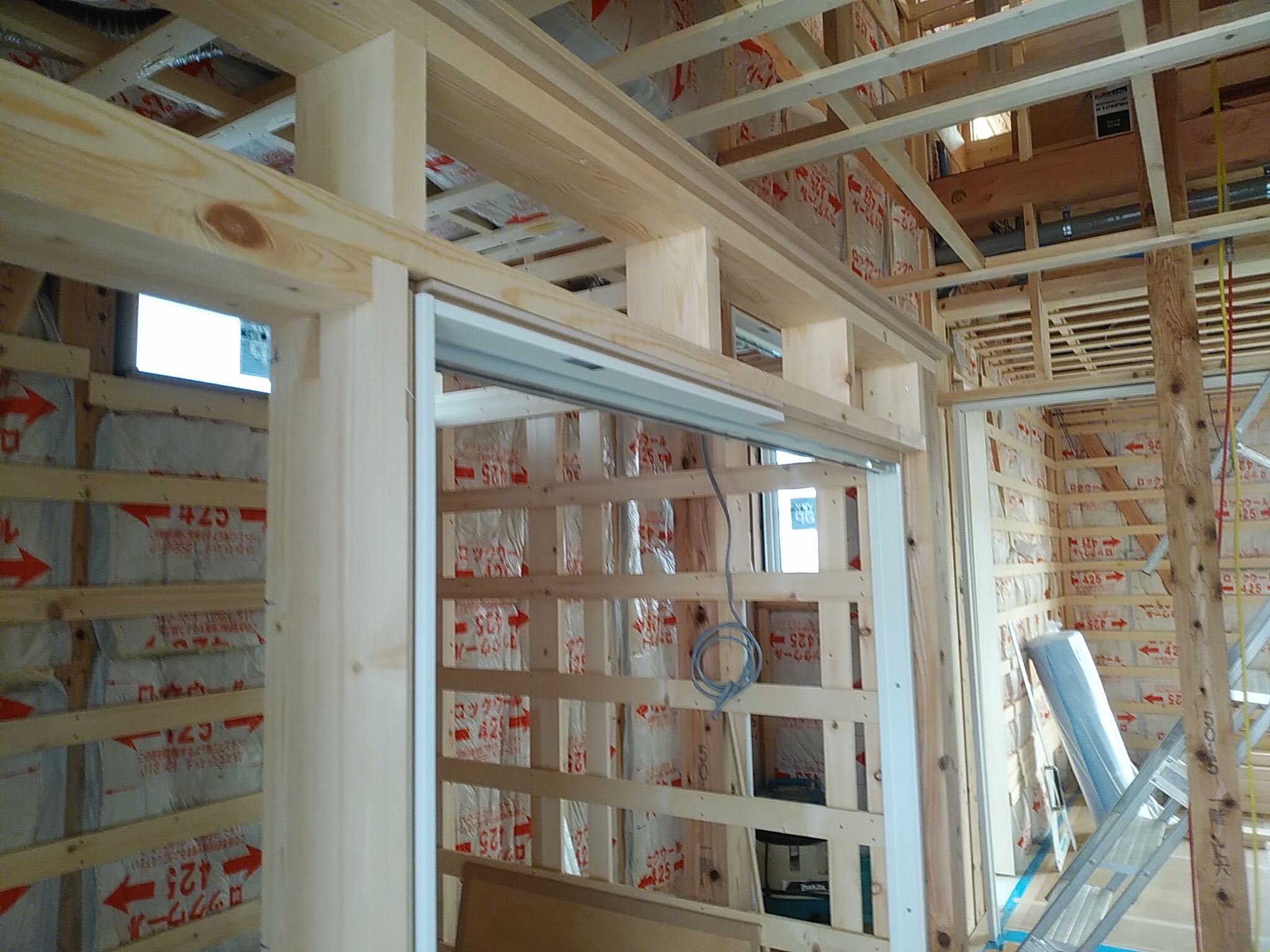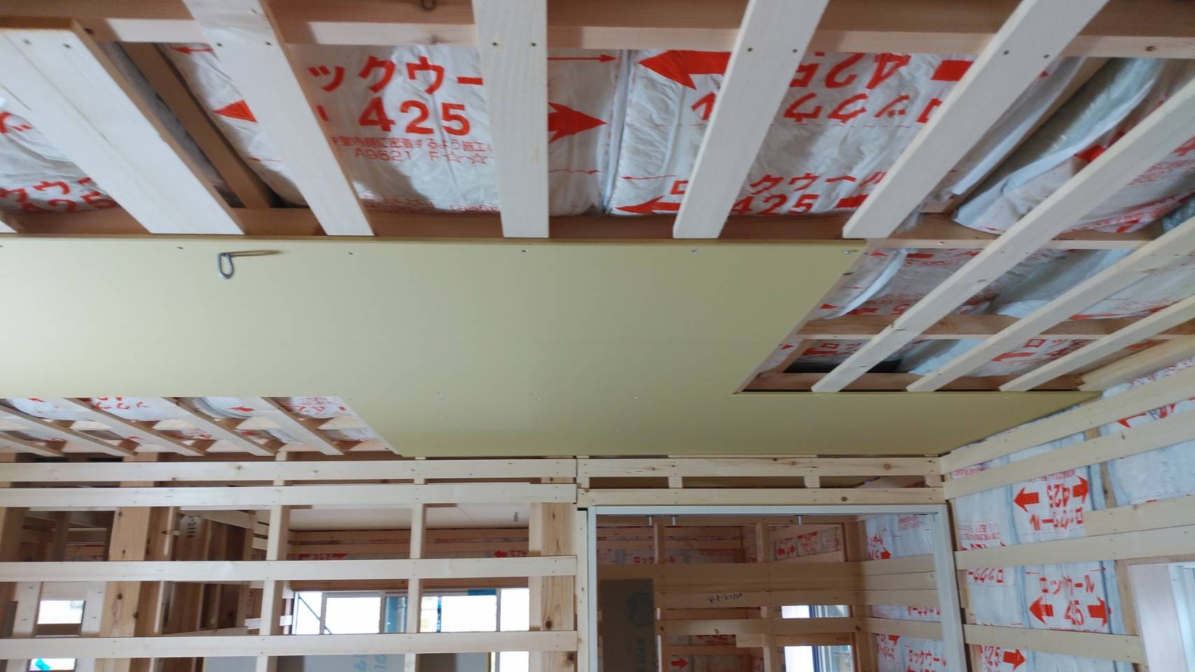 中間検査が終了しましたので 来週より石膏ボードが現場に搬入され、天井より施工されます。