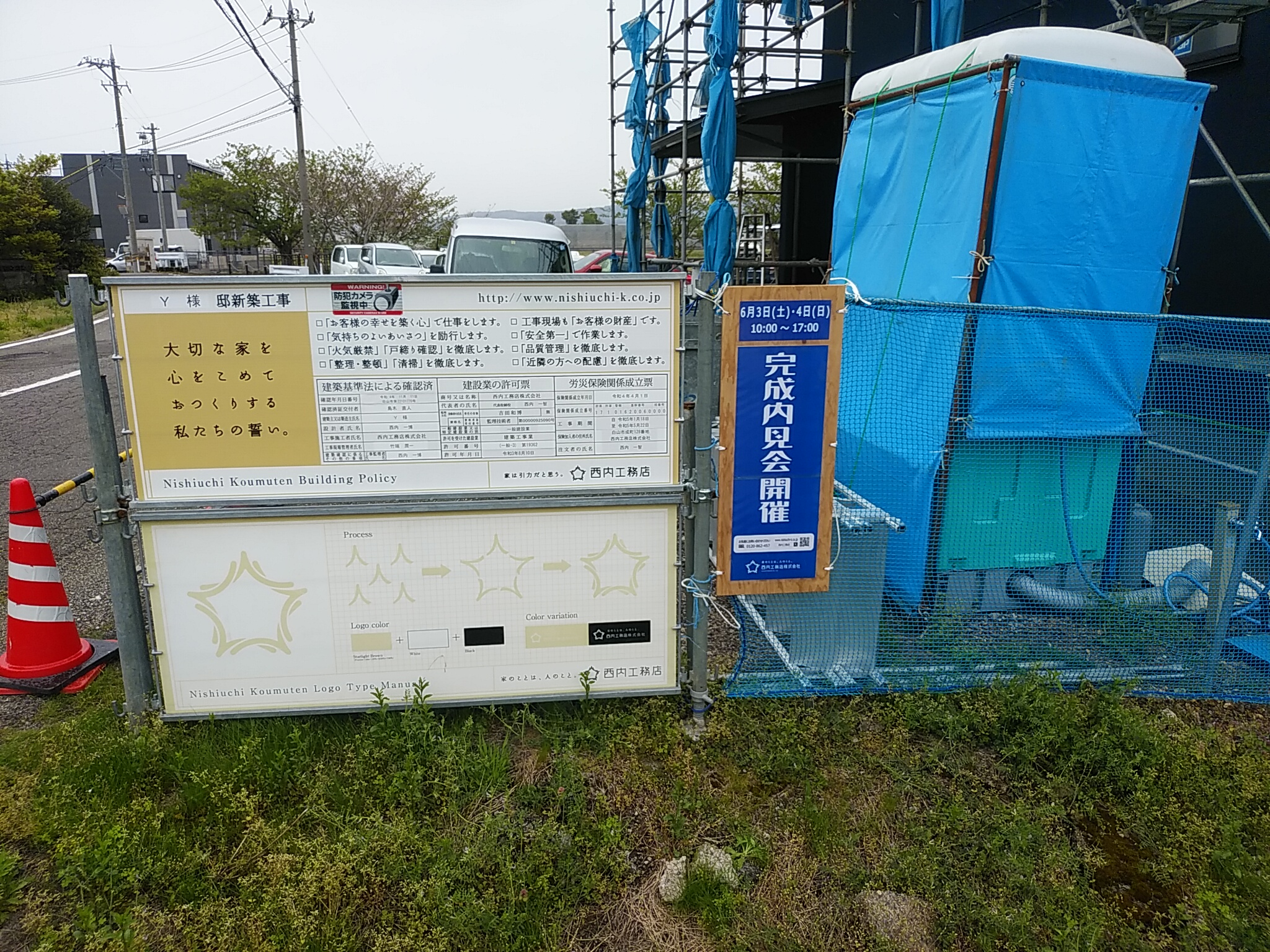こんにちは。 工事現場に完成内見会の告知看板設置しました。 家づくりをご計画の方、家に興味がある方、 たくさんのご来場お待ちしております。