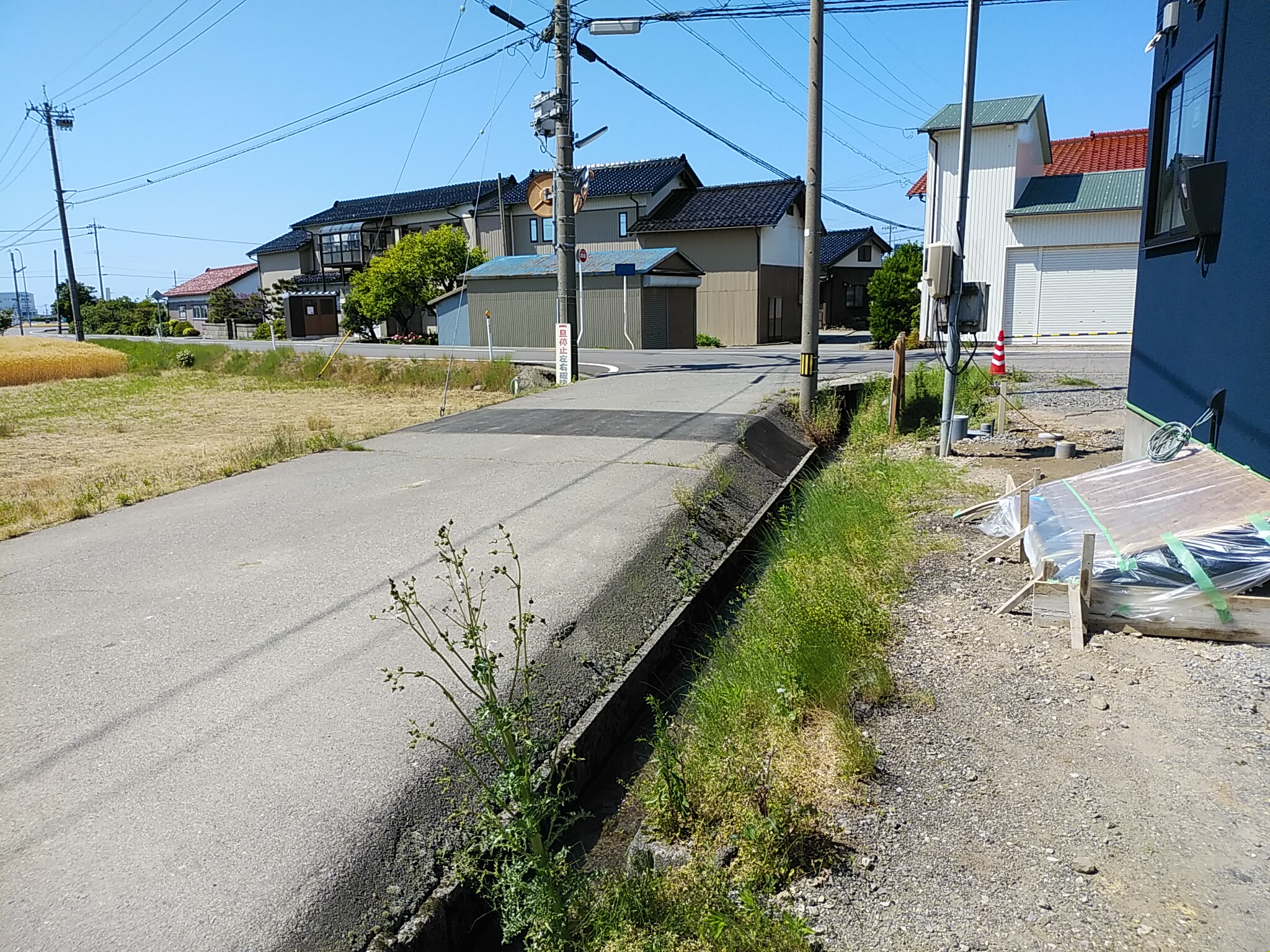 外構工事がスタートしU字溝が添えられました。 アスファルトの補修も行っております。