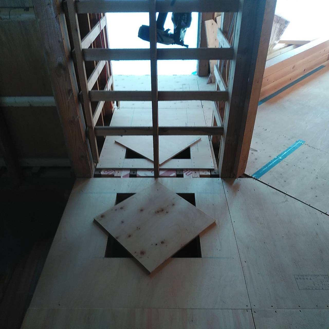 必要な部分に床下点検口を設けるための開口作業が行われていました。