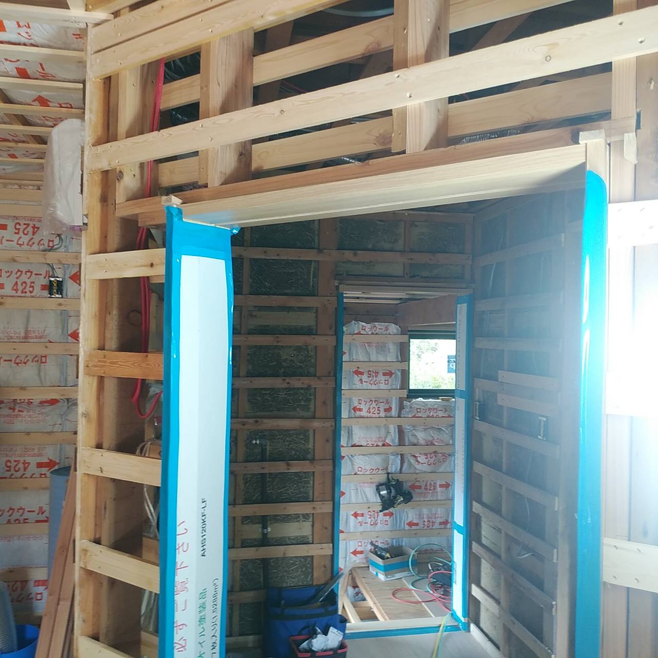 それぞれのお部屋に入る建具の枠が取り付けられました。ドアなどの取り付けは完成直前となります。