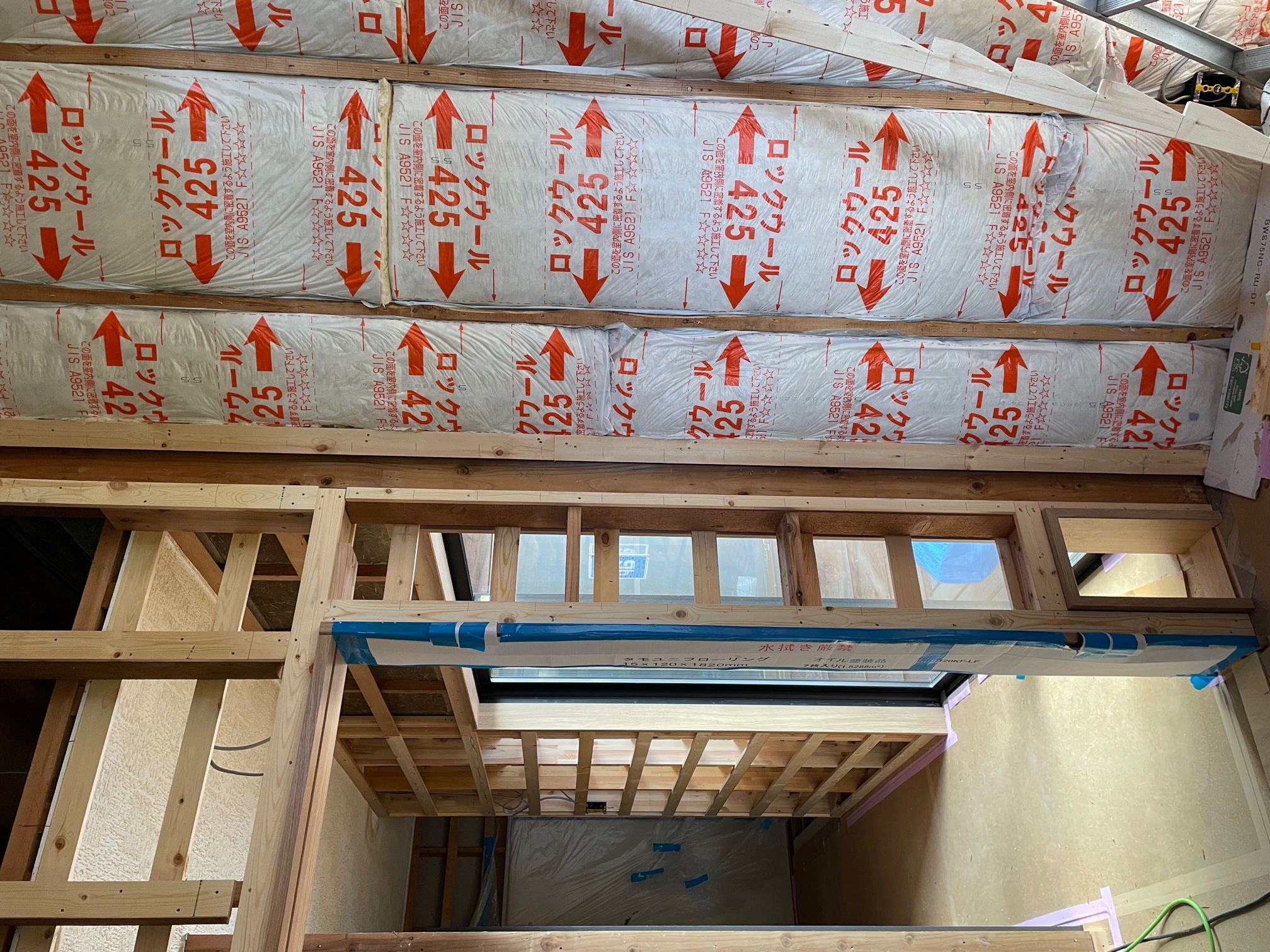 断熱材の施工が始まっています。 こちらはキッチン部分になります。