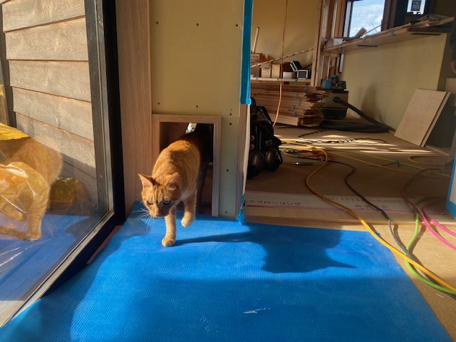 キャットドアの枠組を行いました。 かわいいネコちゃんも新しい住まいで楽しんでいただきたいです。
