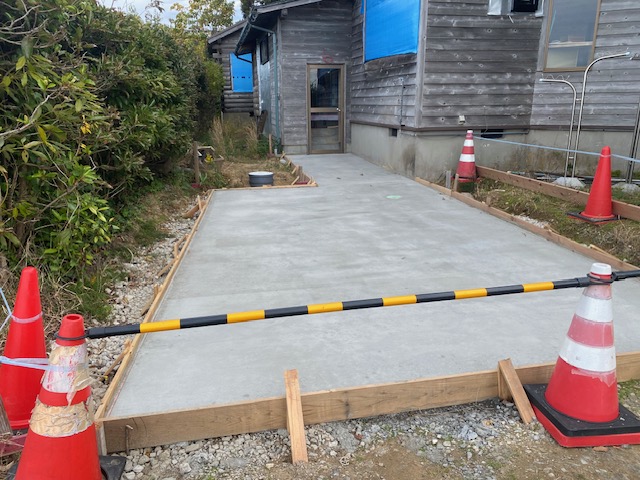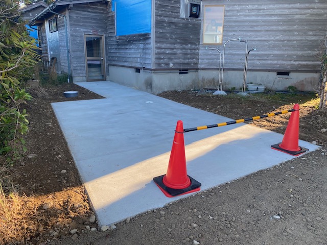 外構のコンクート土間工事の型枠が取れました。しばらく養生期間となります。