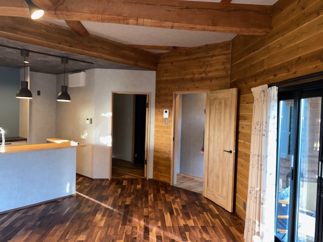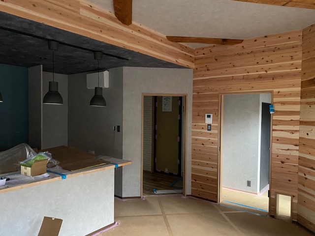 壁の無垢板貼りの工事が始まりました。 木の香りがして幸せな空間になりそうです。