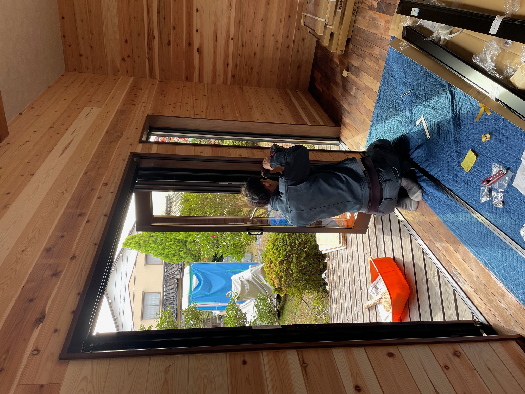 ごまめ様 本日も現地での打合せありがとうございました。 現地でもお話させていただきましたが、新しいサッシの取り付けが始まりました。残りのサッシも順次取り付けていきます。