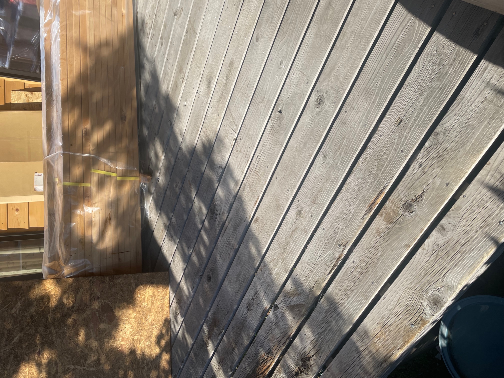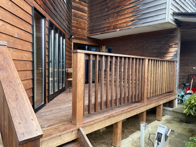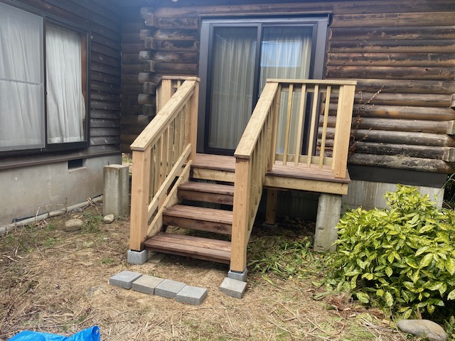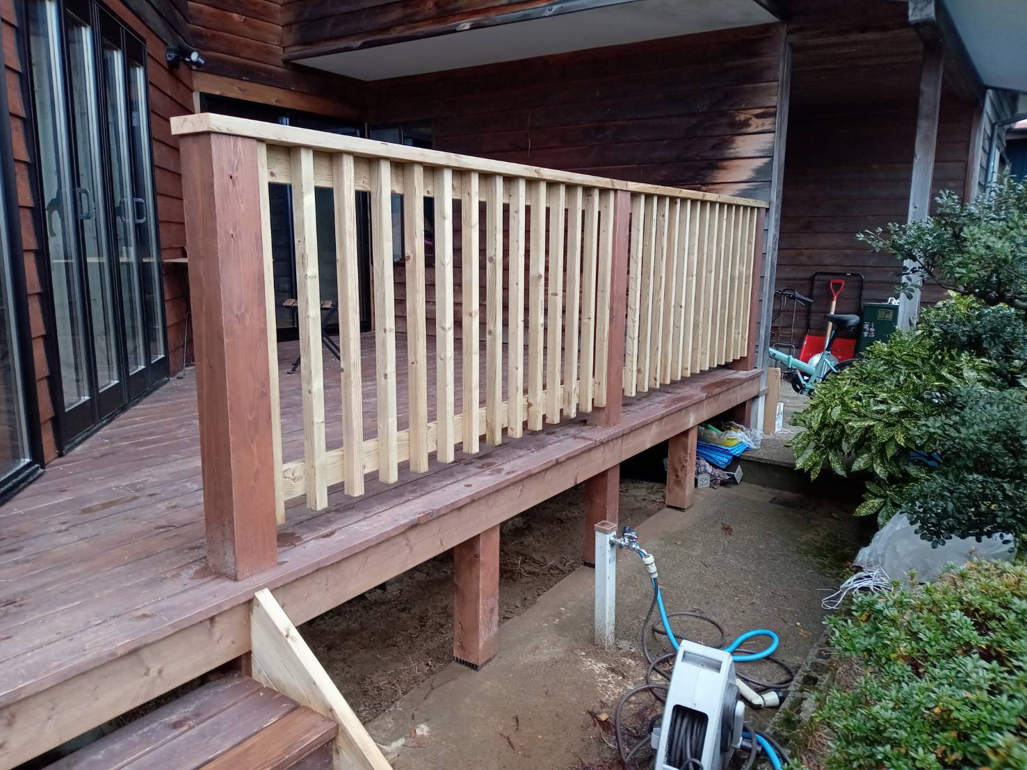 正面のウッドデッキに続き、離れ部屋のウッドデッキが完成しました。 これからごまめ様のDIYにて塗装工事を行っていただきます。