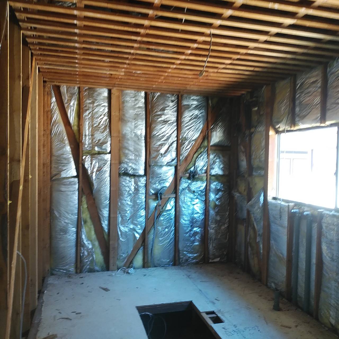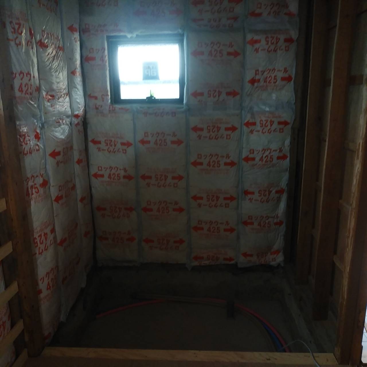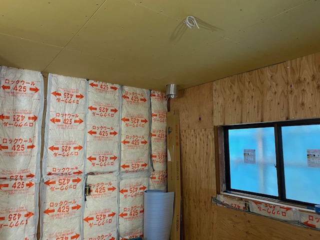 以前窓があった西面部分も窓を取り外して断熱材がびっちりと取り付けられています。