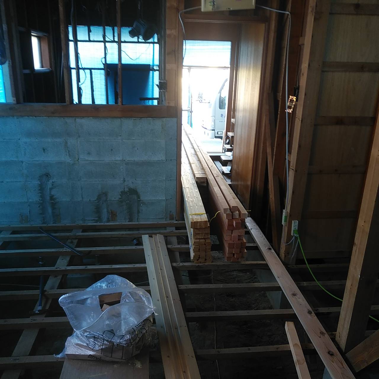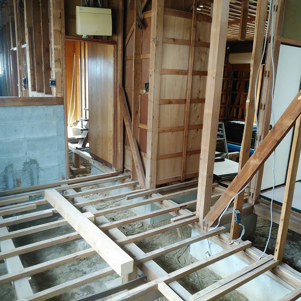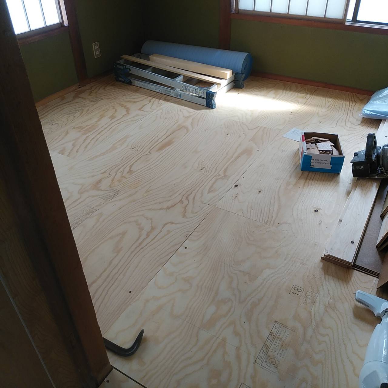 お二階の和室だったお部屋ではフローリングの施工が始まっていました!!