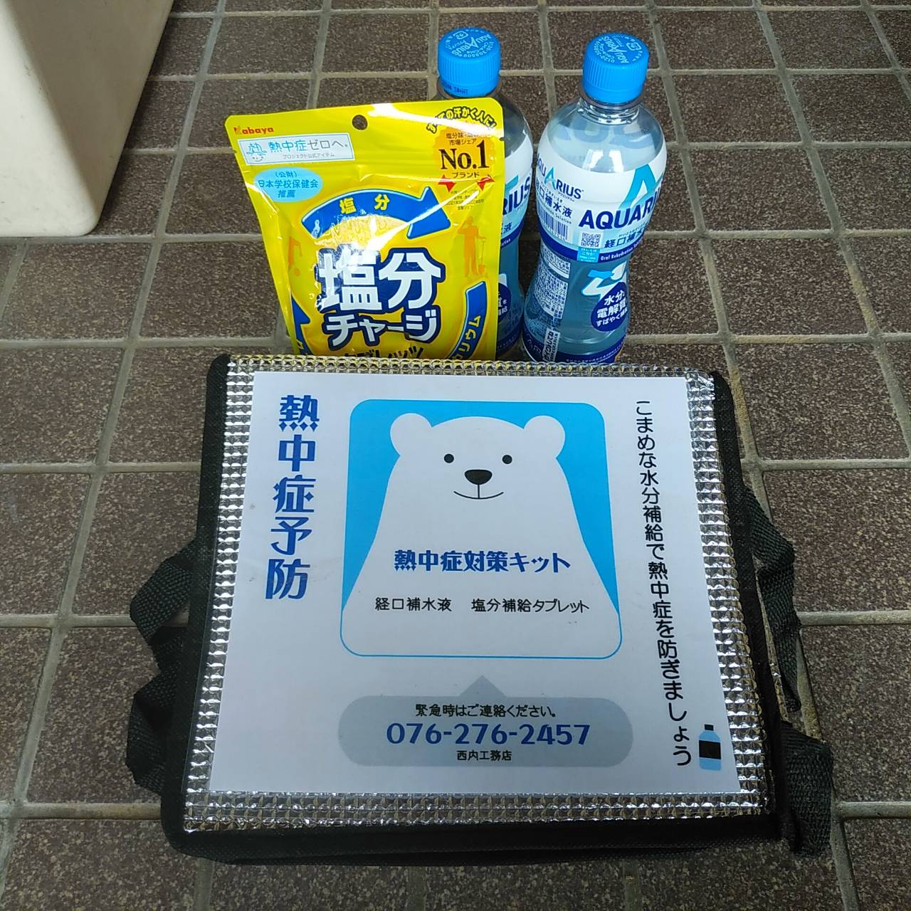 本日は安全パトロールでした。 暑い時こそ、ちょっとした油断が大きなケガにつながっていきますので、危険なところがないかをしっかりと確認いたしました。 熱中症対策キットも商品切れがなく配備されていました。