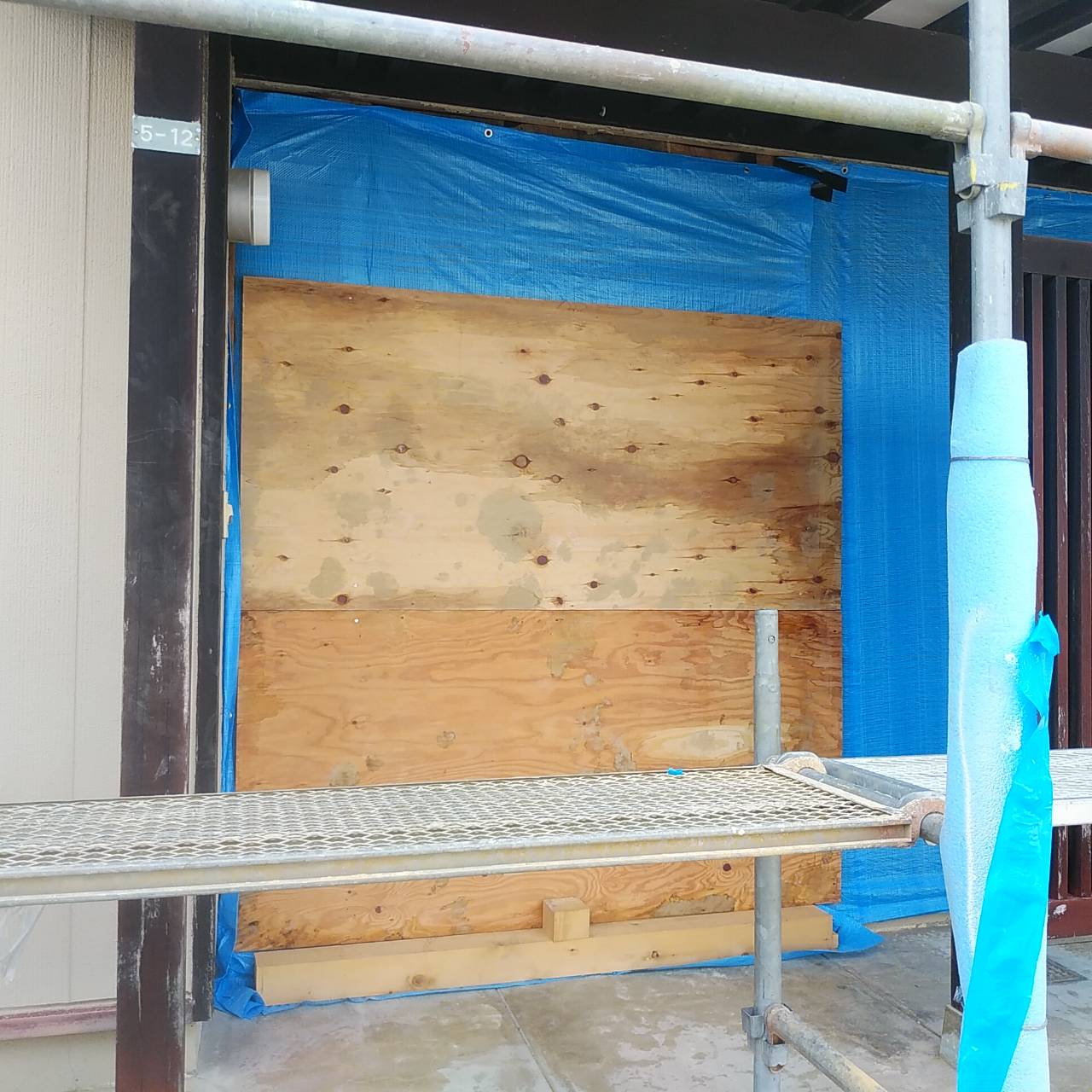 窓を取り除いた部分のボードが取り付けられていました。 これで雨漏りの心配もなくなります!