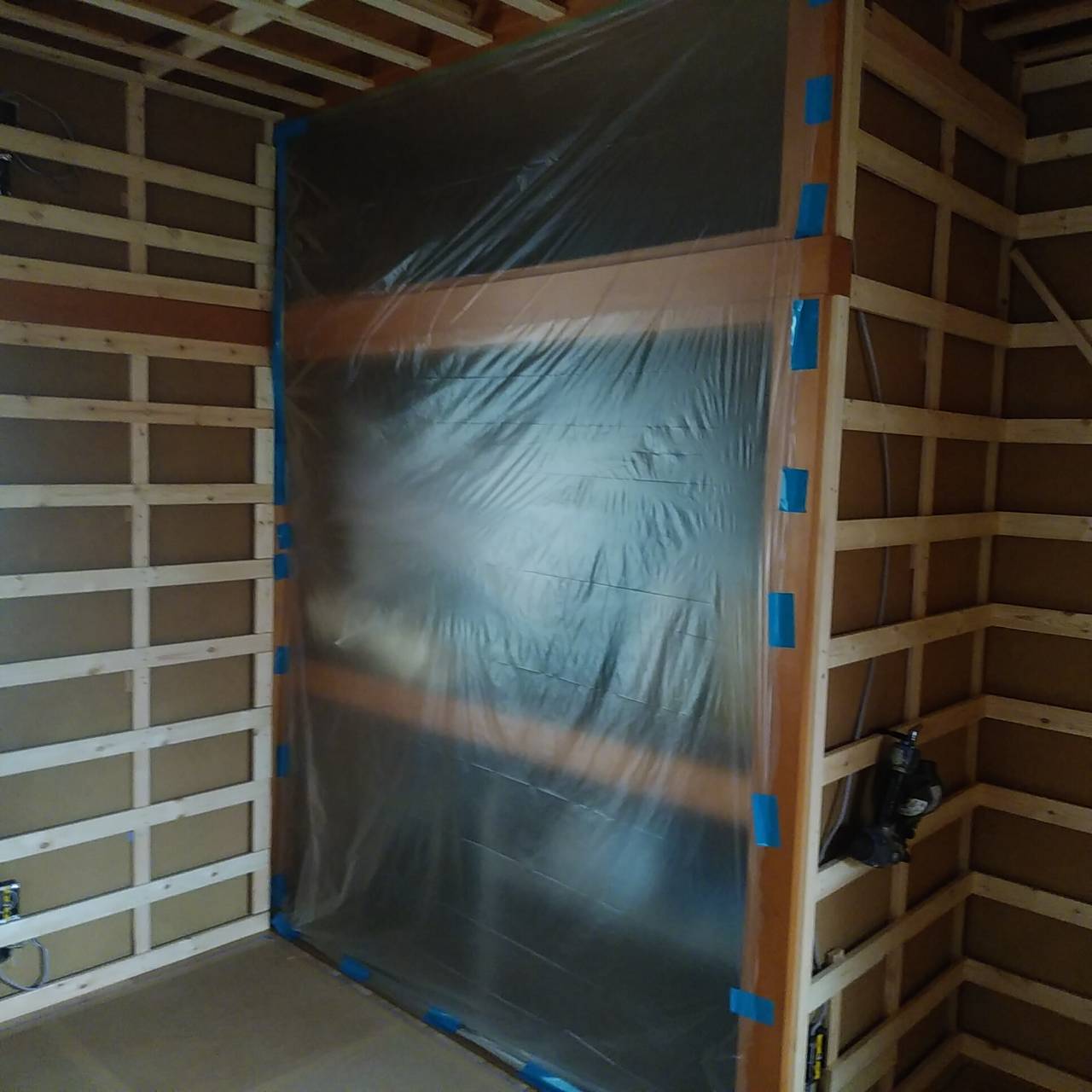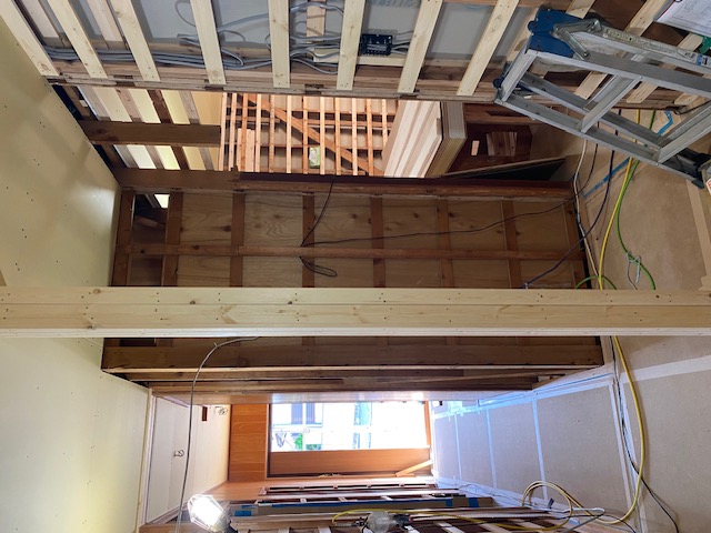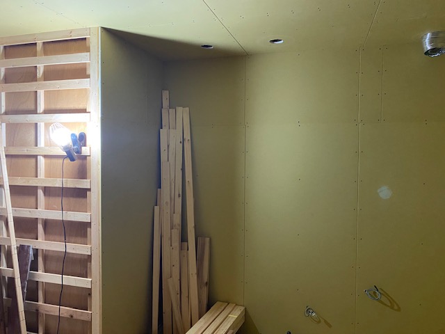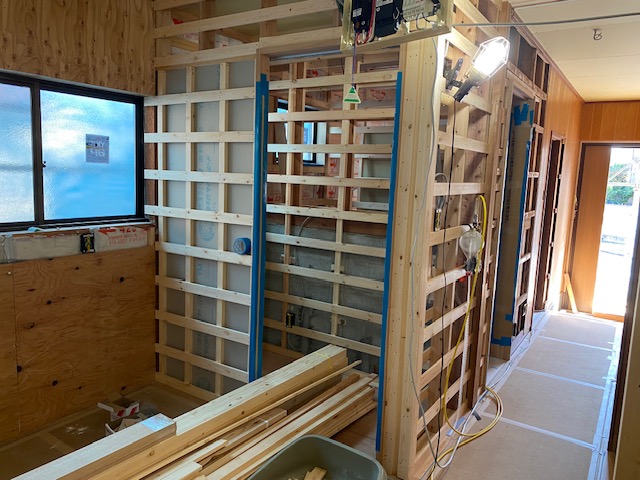 追加でご用命いただきましたホールの壁下地も施工完了です。 大工さんの工事完了ももうすぐです。