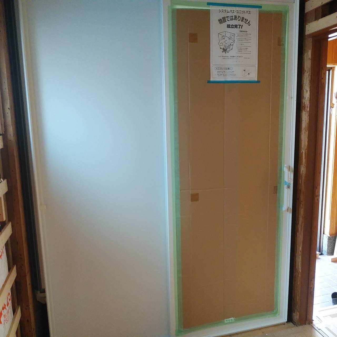 ユニットバスの設置が完了していました。 ちょっとだけ家らしくなりました。