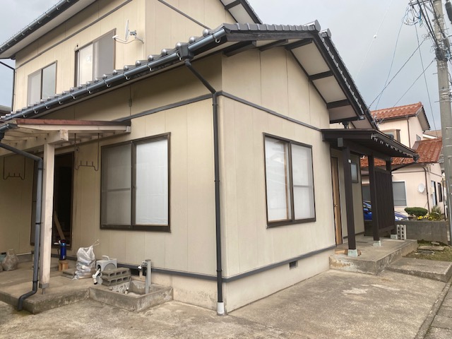 こちらは1階、2階の西面でこれまであった窓を取り外して壁にする部分となります。内部の作業の進捗とあわせてこれからサイディングを貼っていきます。