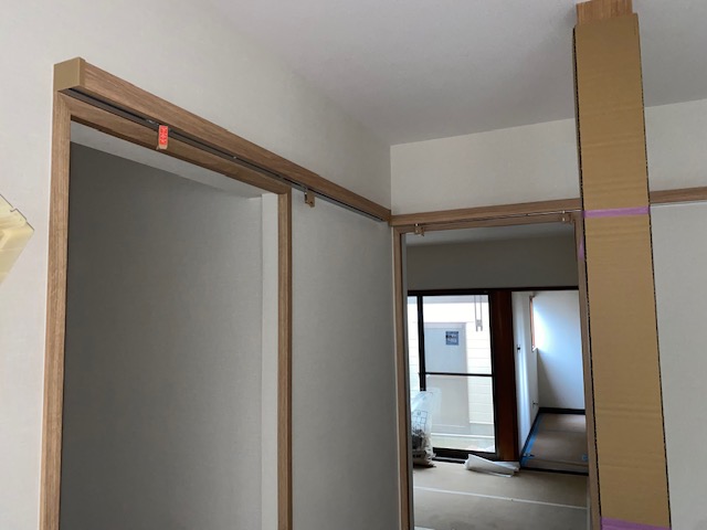 建具枠の取り付けも全て完了しております。最終のクリーニング完了後に扉の取り付けを行います。