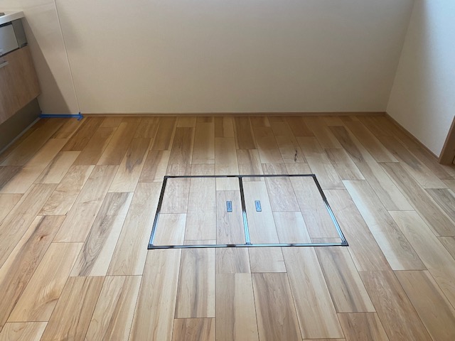 キッチンの床下収納庫の取り付けが完了しました。 前回と同じサイズですのでたっぷりと収納できます。