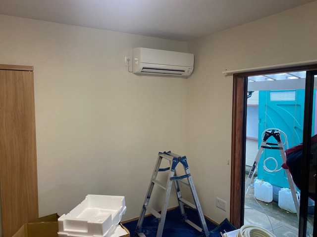今週末のお引渡しに向けてエアコン工事が行われています。まもなくお引渡しとなります。