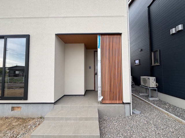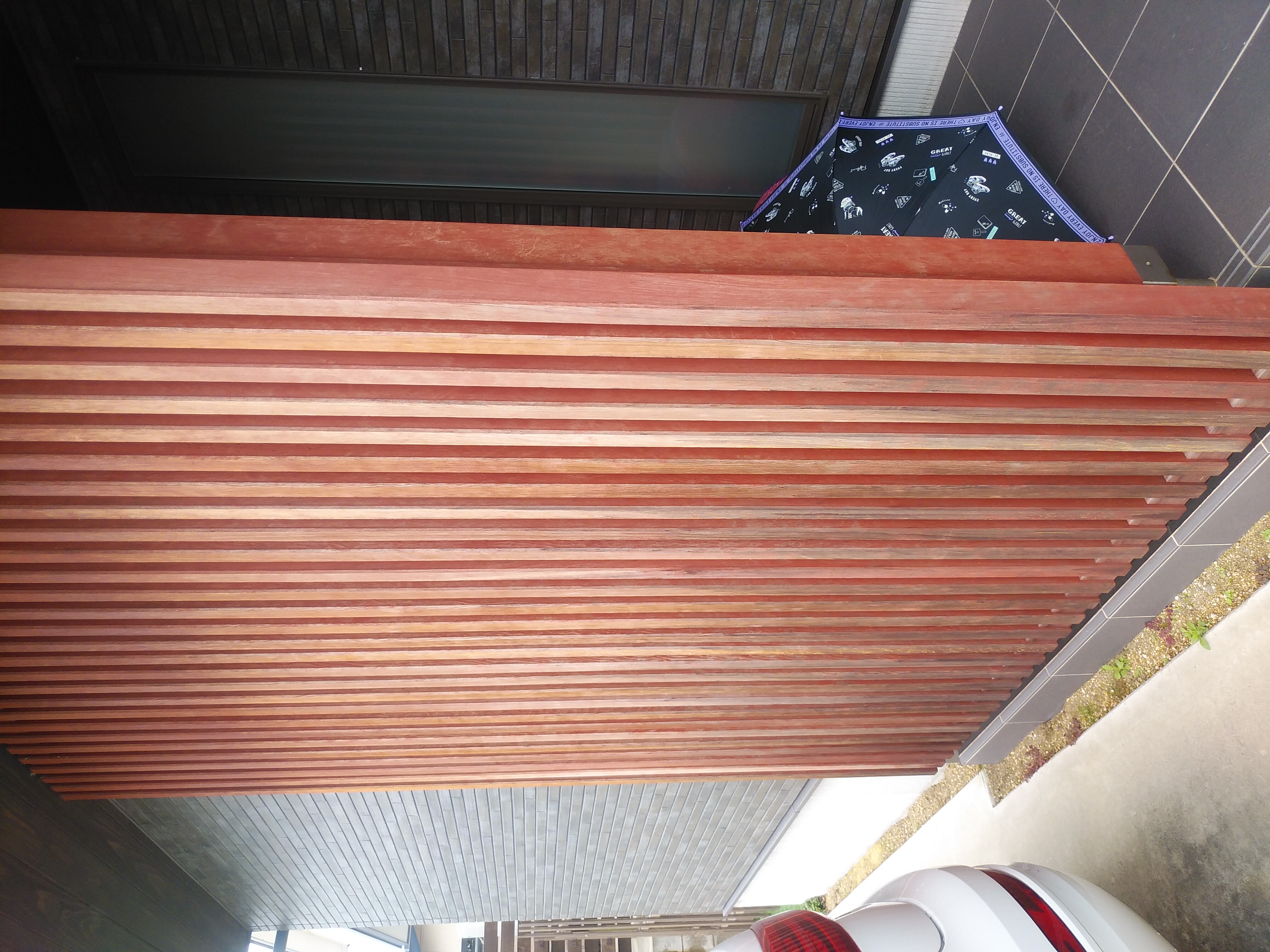 先日のお打合せにて玄関ポーチ部分の壁を木格子に変更したいとのご依頼をいただきました。画像は別のお客様の木格子の様子ですが、このような雰囲気で改めてご提案させていただきます。