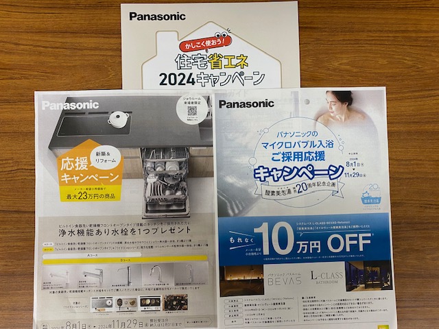 新築やリフォームをご計画のお客様に国のキャンペーンや各メーカー様のキャンペーンなどの案内が当社に紹介されております。こちらはパナソニック様から紹介のあったもののチラシになります。