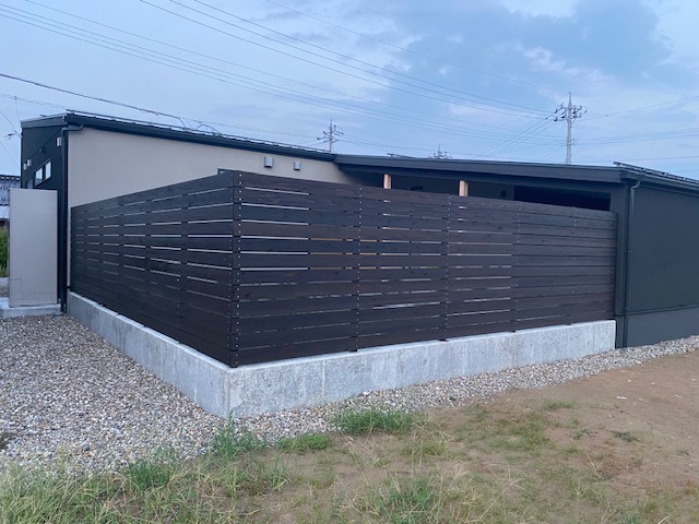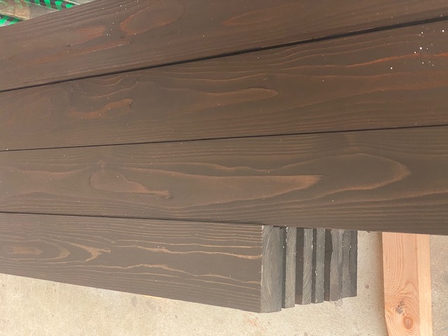 画像は別のお客様で施工を予定している無垢の杉板に塗装を施した目隠し塀の板材となります。 Kuu様も目隠し塀を予定しておられることからご紹介させていただきました。 外構工事の打ち合わせの際に、改めてご紹介させていただきます。