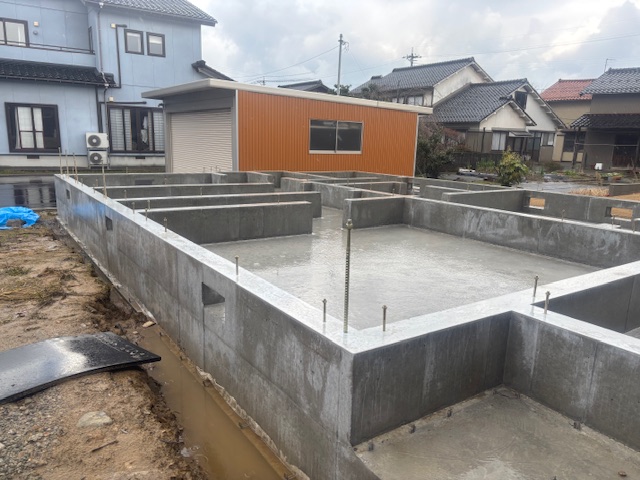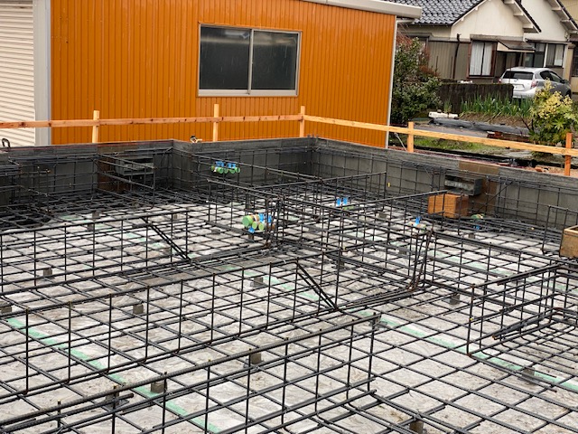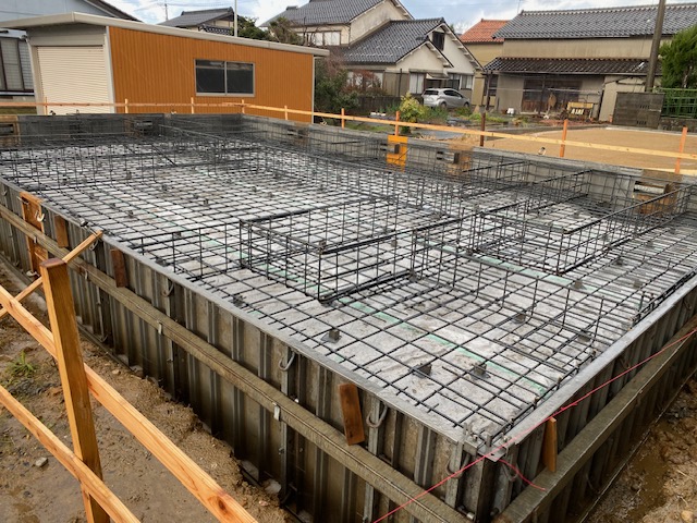 Kuu様こんにちは! 先週より基礎工事が始まっております。すでに基礎下のベースコンクリートの打設が完了し、立上がり部分の型枠が組まれております。明日午前の検査機関の確認を経て、立上がり部分の打設を行います。