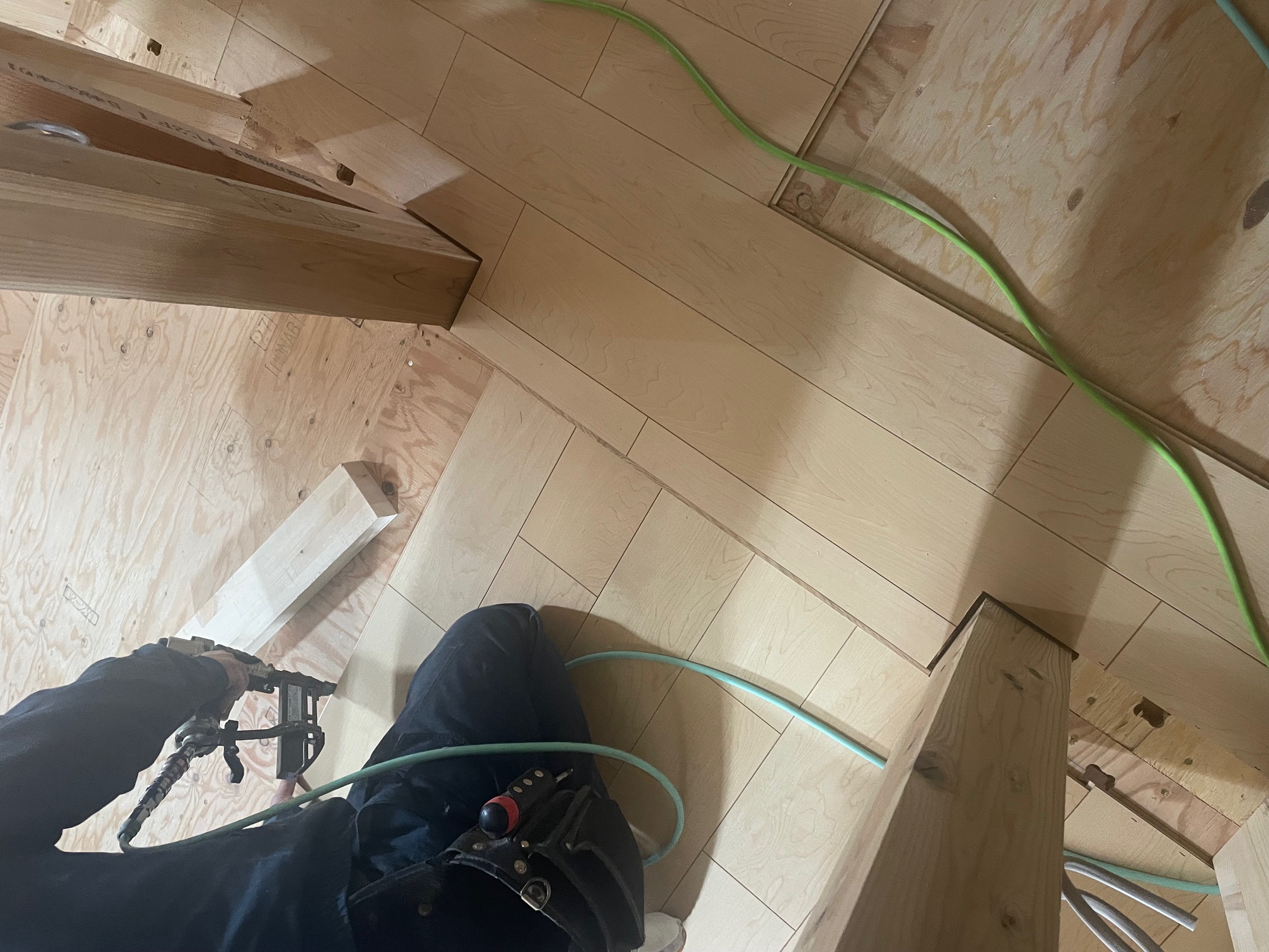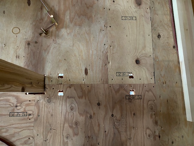 一部を除いて1階部分の床合板の取り付けが完了しています。