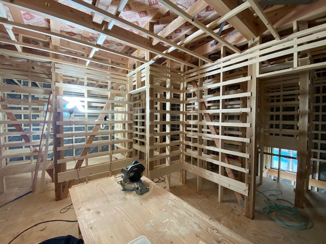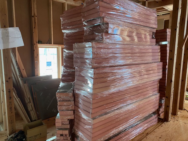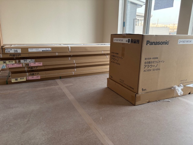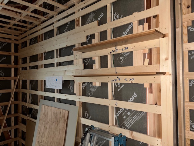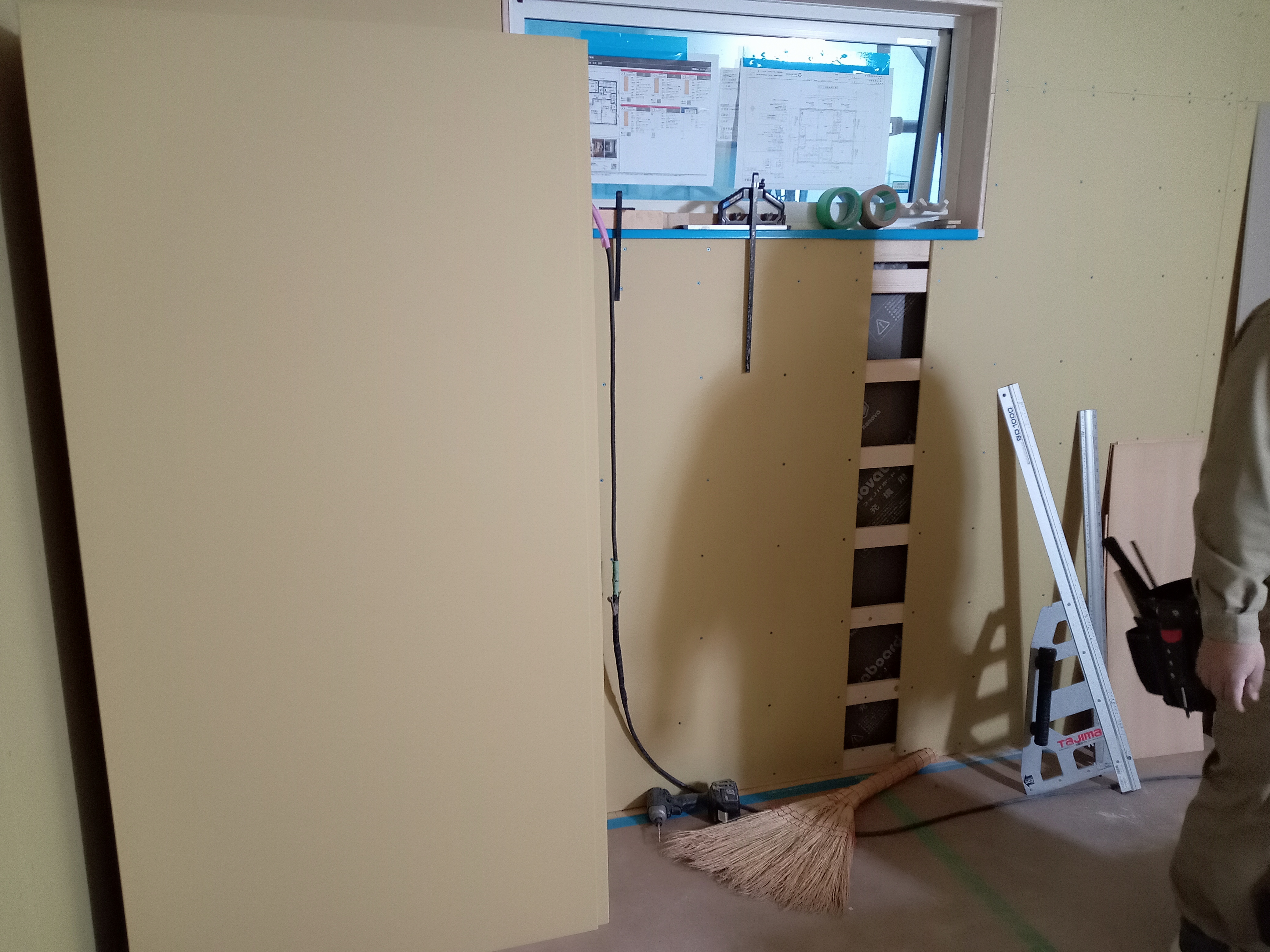 こちらは1階部分に取り付けるボードです。 大工さんの工事もいよいよ終盤に入ってきました!