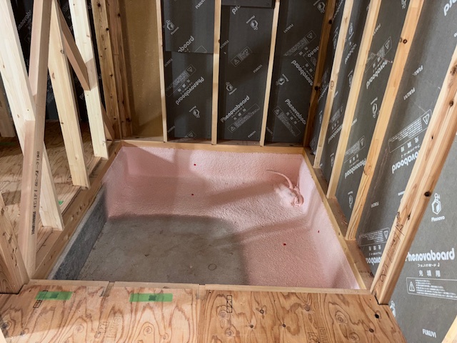 こちらはユニットバスが設置されるスペースです。外周部にウレタン断熱が施工されております。