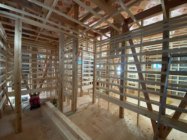 上棟も無事完了し、内部の大工工事が粛々と進められています。