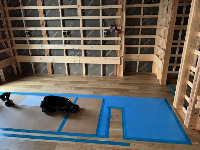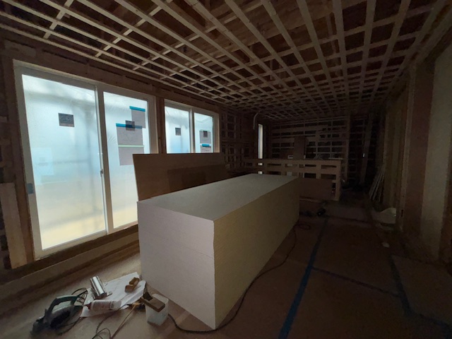 先日ご紹介した壁の断熱材の取り付けが始まりました!